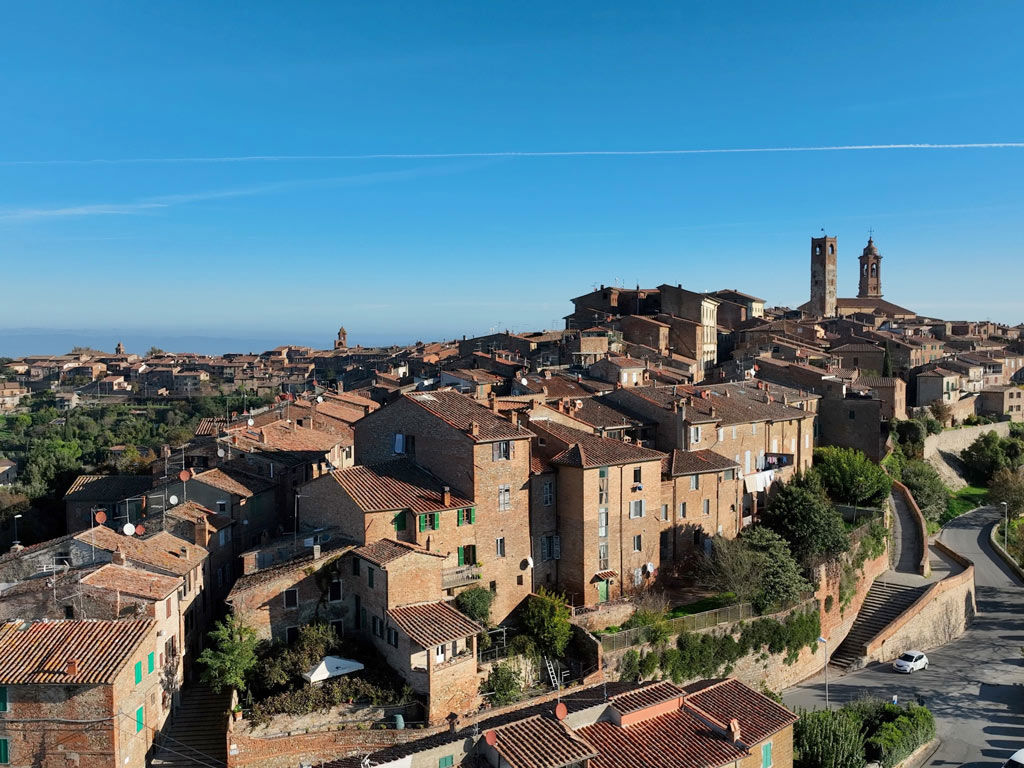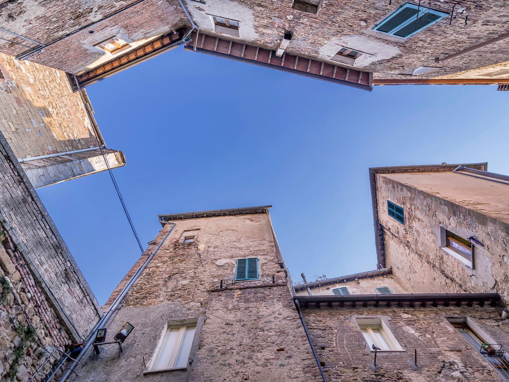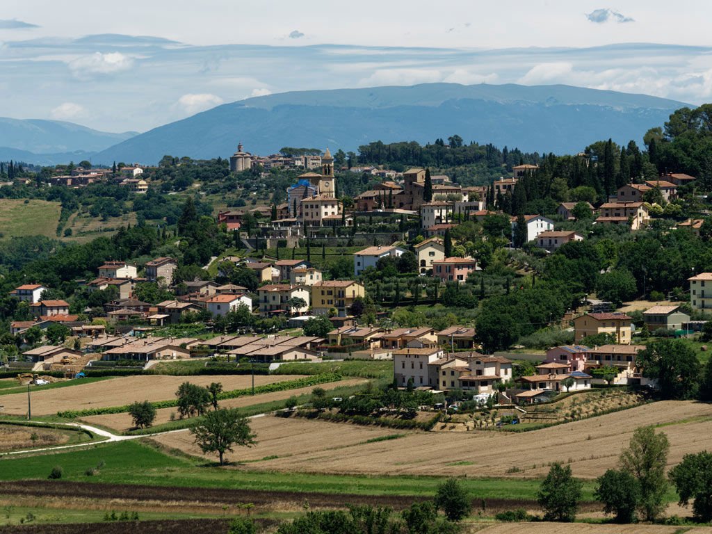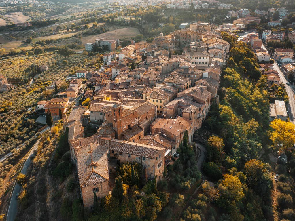 Piccola, compatta, tutta di mattoni rossi. È la città che ha dato i natali al Perugino, e gli affreschi che portano la sua firma sono ovunque. Dal borgo lo sguardo arriva fino alla Val di Chiana, e se ti capita di passarci, non perderti il vicolo Baciadonne, uno dei più stretti d’Italia.
