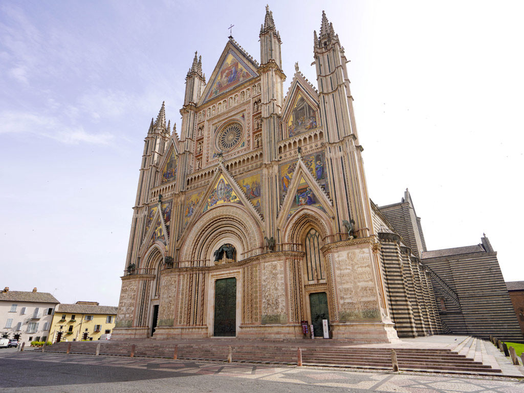 Una rupe di tufo, un Duomo che da solo meriterebbe il viaggio. I mosaici dorati sulla facciata catturano la luce in ogni ora del giorno. Poi ci sono i sotterranei, il Pozzo di San Patrizio, il quartiere medievale. Quando hai finito di camminare, siediti e chiedi un bicchiere di Orvieto Classico: è il modo giusto per chiudere la visita.